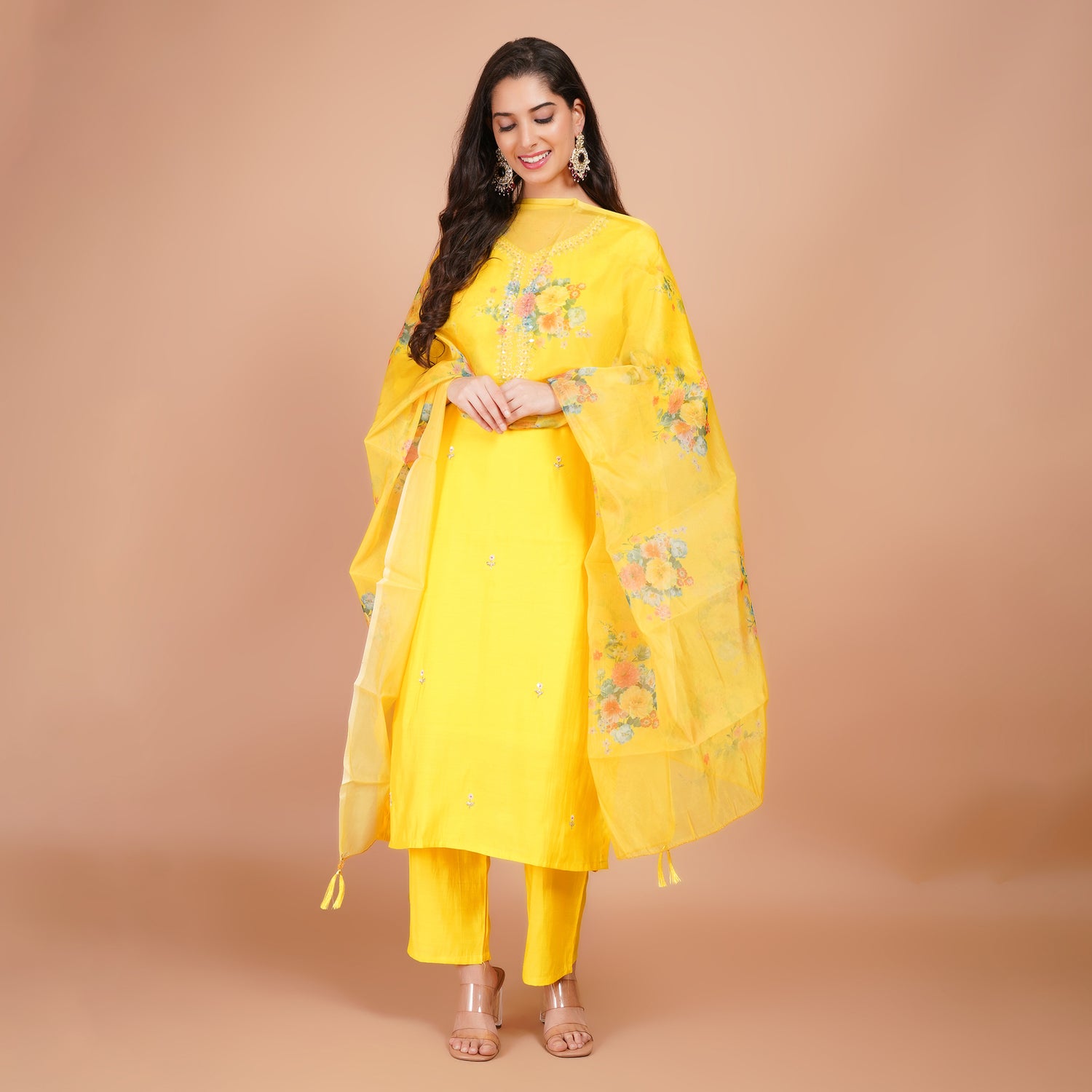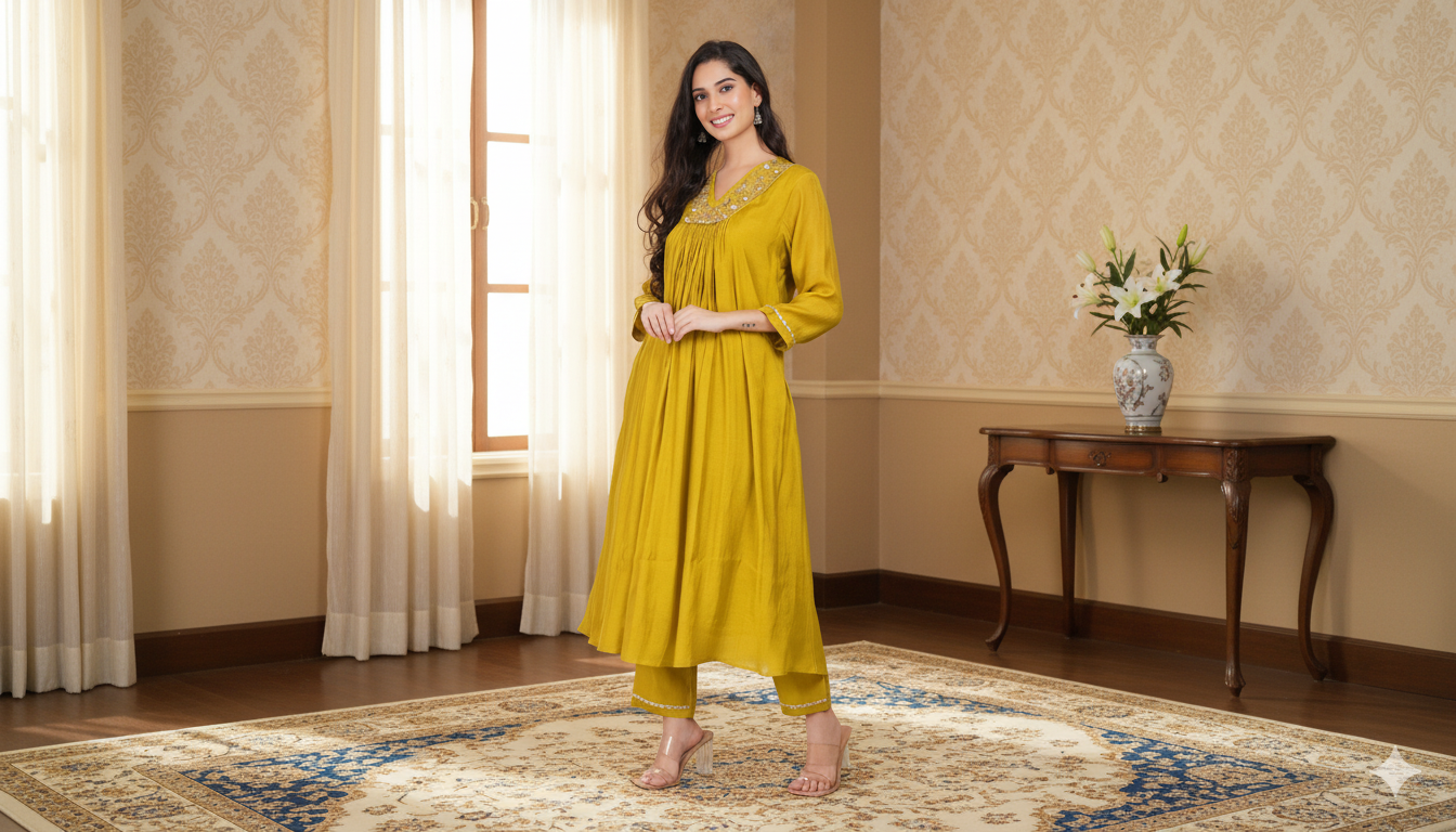 Stunning Yellow Ethnic Kurta Set with Banarasi Dupatta - Festive Look