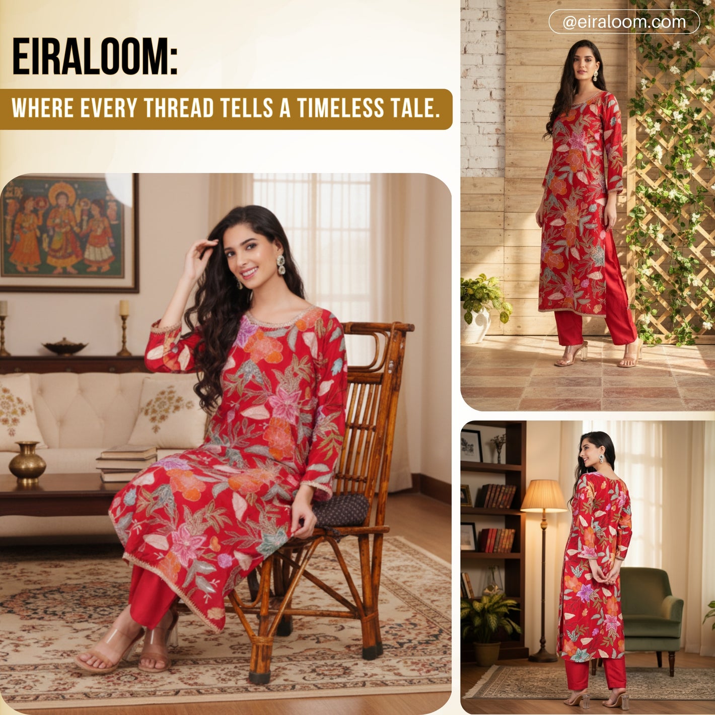 Red Jari Dabka Organza Kurti Set – Festive Wear