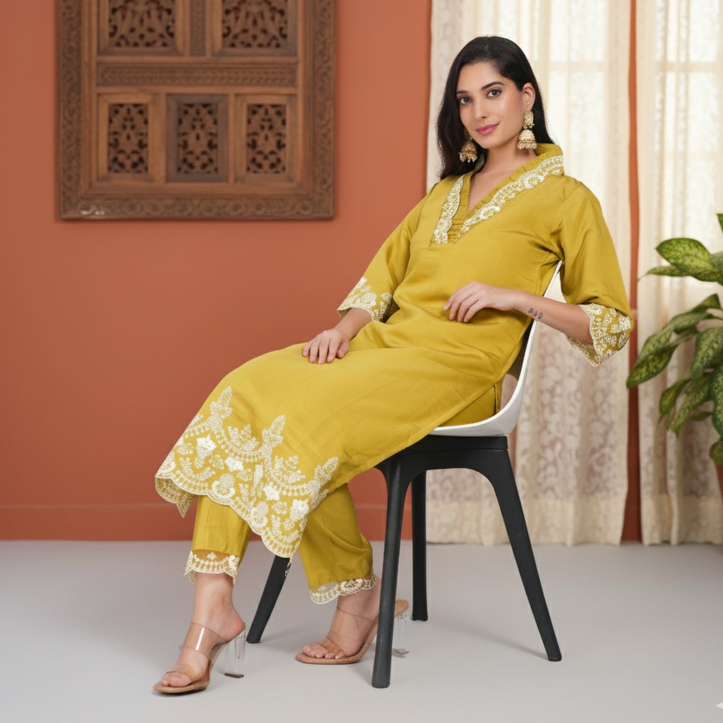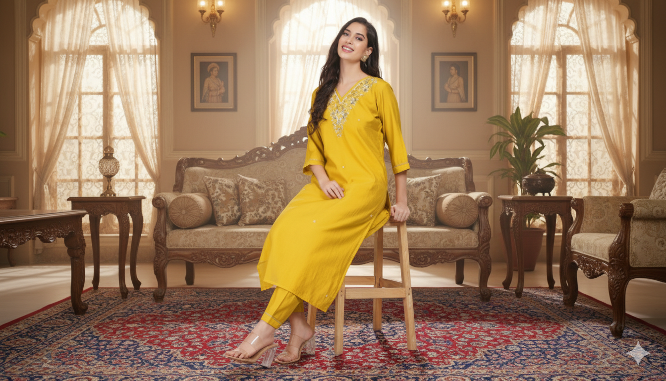 Stunning Yellow Ethnic Kurta Set with Banarasi Dupatta - Festive Look