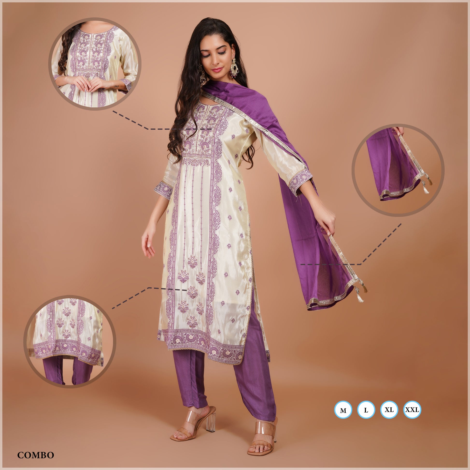 Make a graceful statement with this White & Purple Embroidered Kurta Set, designed for festive occasions, parties, and special gatherings. Featuring rich embroidery on the kurta, paired with a stylish bottom and matching dupatta, this set adds elegance and charm to your ethnic wardrobe.