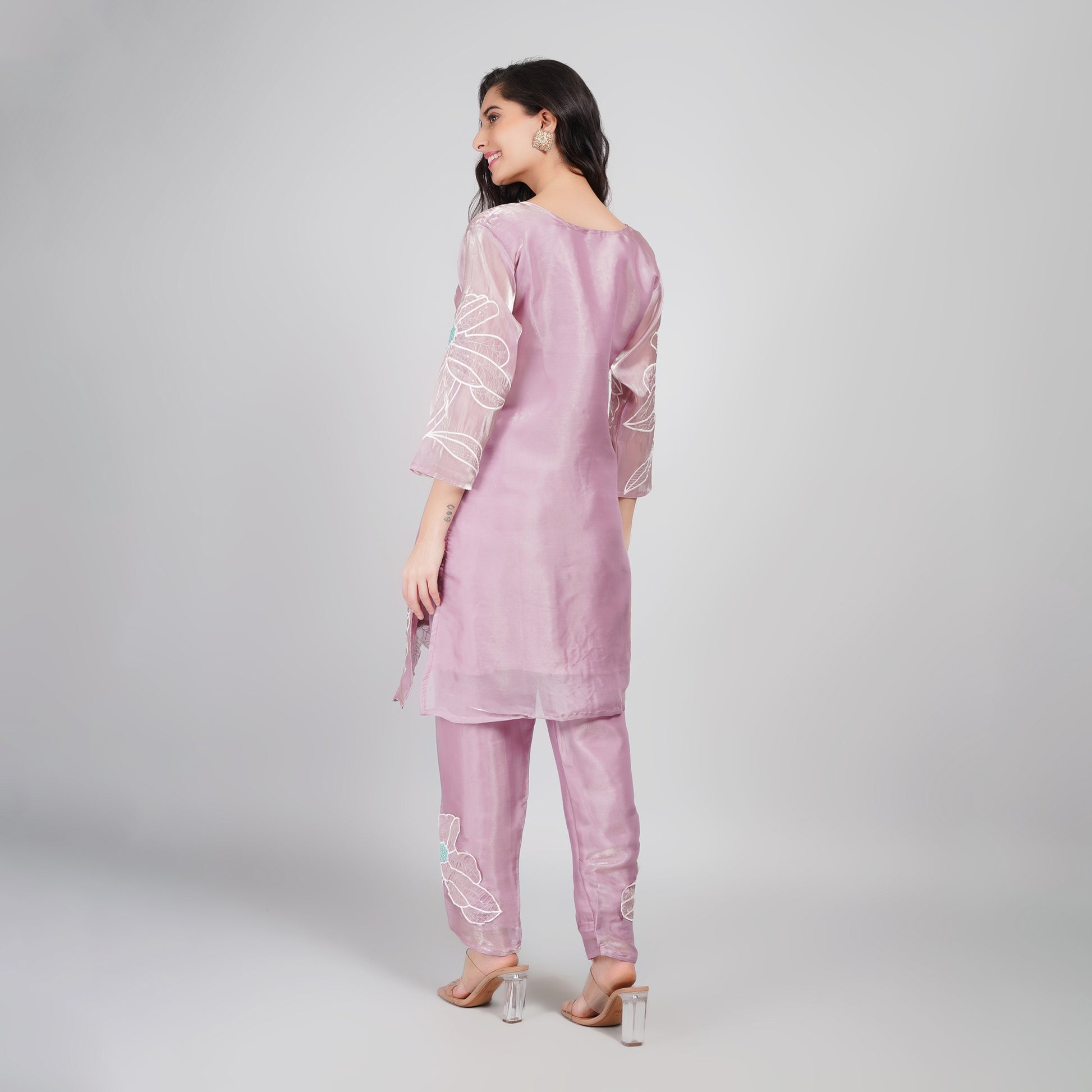 Turn heads with this elegant Silk Shimar Cord Suit, crafted with delicate petal flower work for a subtle yet striking appeal. Designed with premium Organza fabric, this outfit offers a graceful drape along with superior comfort. Perfect for weddings, festive occasions, or special gatherings, it blends traditional craftsmanship with a modern touch, creating a timeless wardrobe essential.