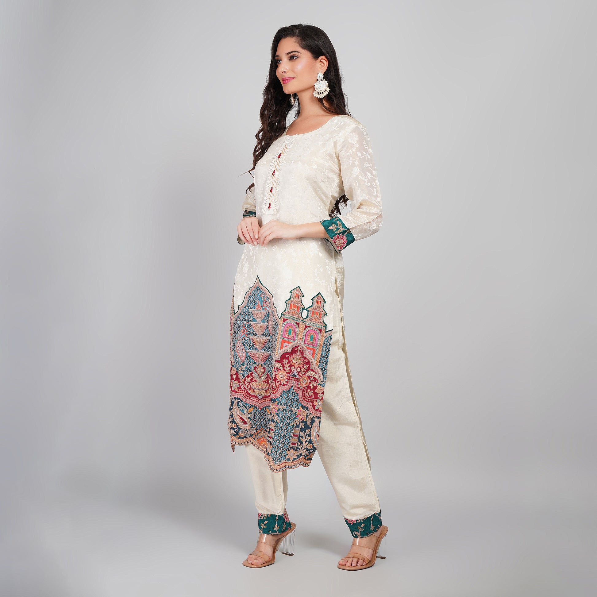 Cream Silk Suit with Jari Work Dupatta & Pant Wear