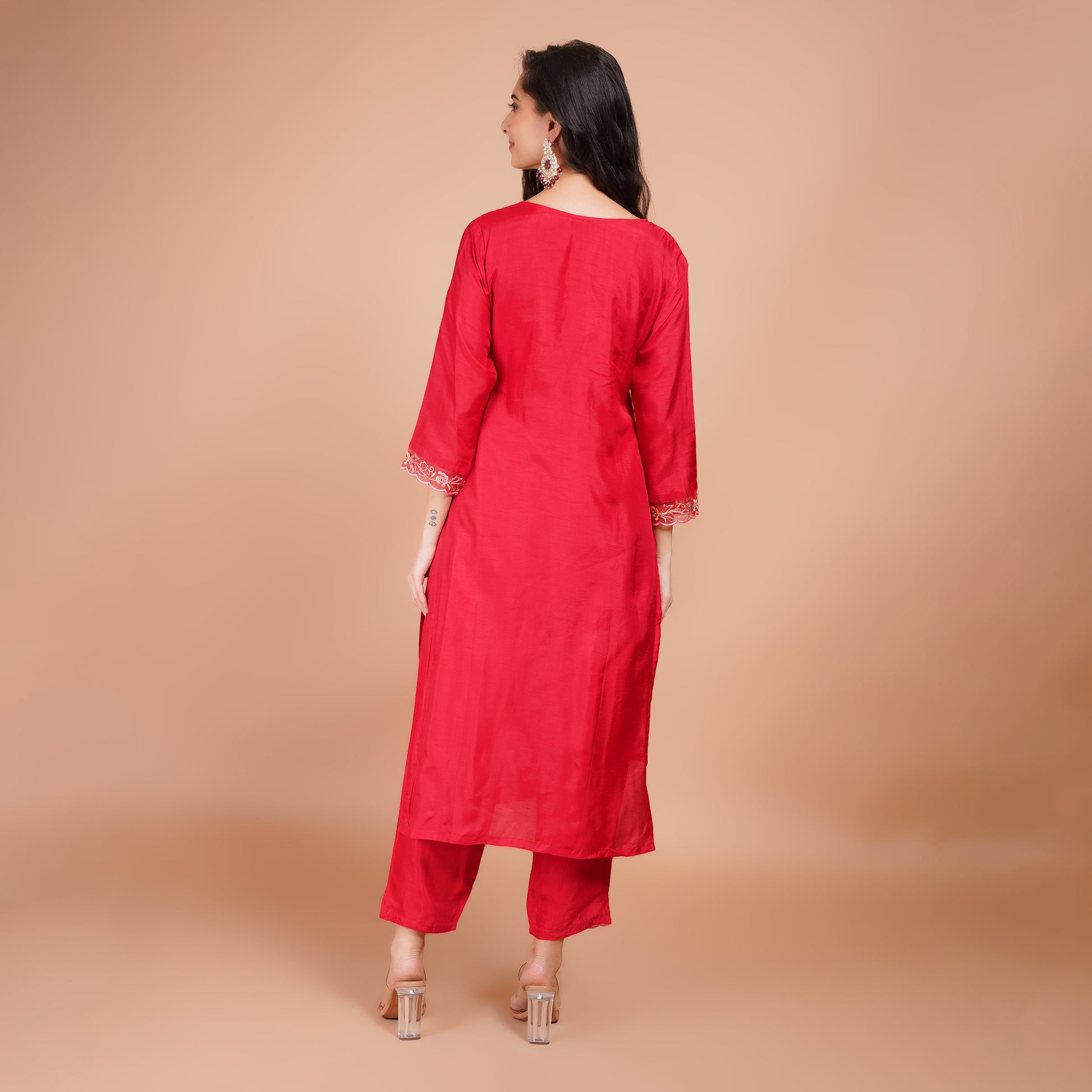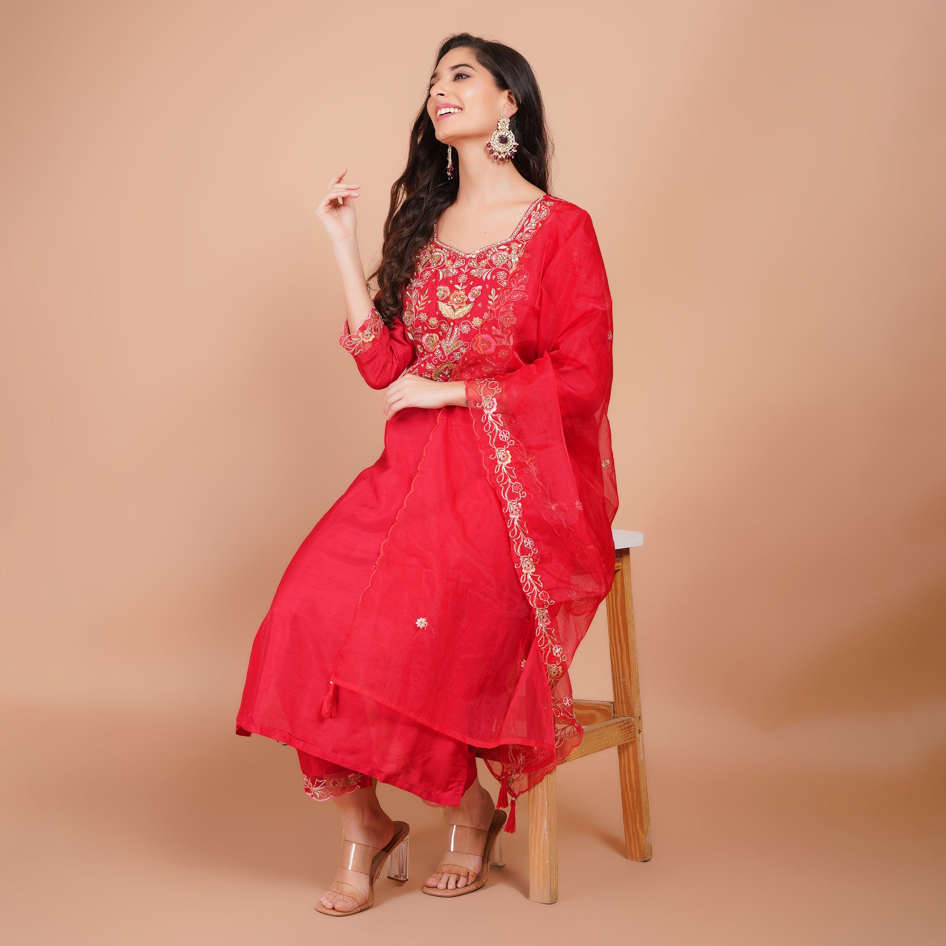Red Jari Dabka Organza Kurti Set – Festive Wear